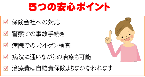 保険会社への対応・警察での事故手続き・病院でのレントゲン検査など適切なアドバイスを致します。