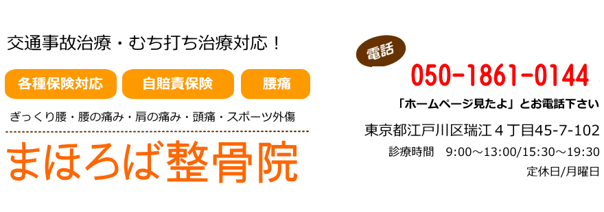 【江戸川区x瑞江駅x交通事故治療x腰痛x肩こり】まほろば整骨院